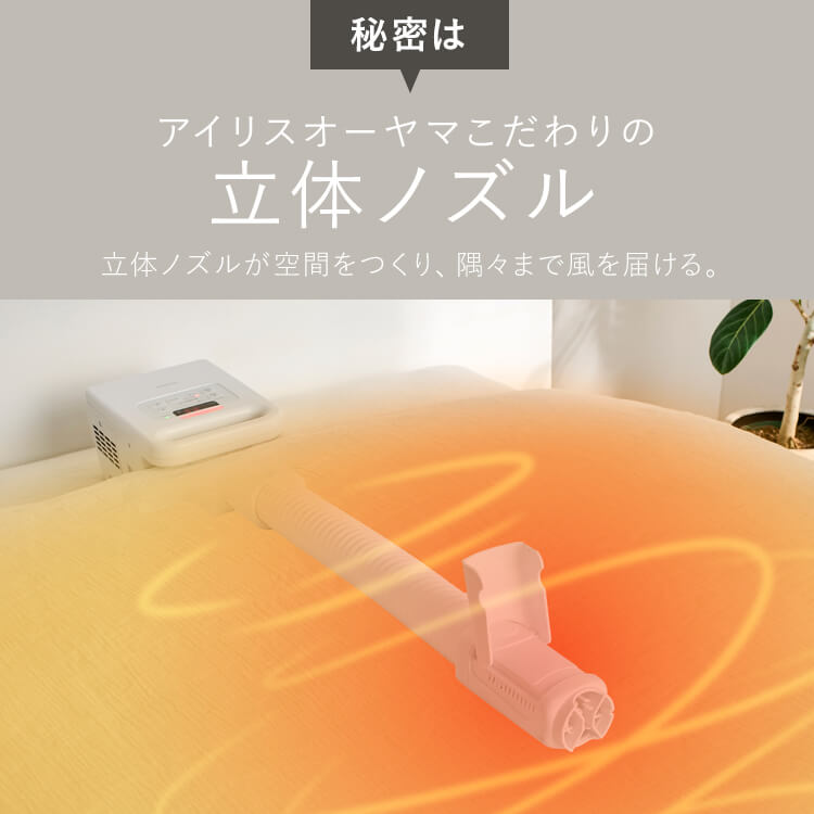 冷えたふとんを一気にあたため、ふんわり仕上げる。