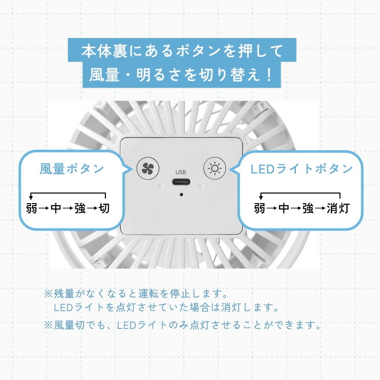 ◆ボタンを押して風量・明るさを切り替え!