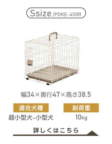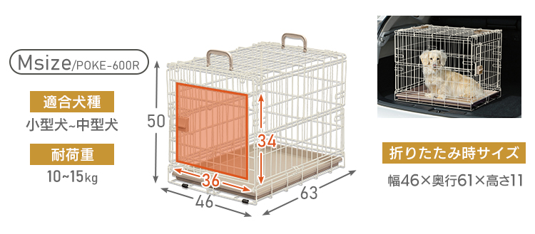 【Sサイズ】●商品サイズ(cm)幅約34×奥行約47×高さ約38.5●折りたたみ時サイズ(cm)幅約34×奥行約45×高さ約10●入口サイズ(cm)幅約26×高さ約24.5●適応犬種超小型犬~小型犬●主要材質線材:スチール(粉体塗装)取っ手・ロックパーツ:ABS樹脂トレー:ポリプロピレン【Mサイズ】●商品サイズ(cm)幅約46×奥行約63×高さ約50●折りたたみ時サイズ(cm)幅約46×奥行約61×高さ約11●入口サイズ(cm)幅約36×高さ約34●適応犬種小型犬~中型犬●主要材質線材:スチール(粉体塗装)取っ手・ロックパーツ:ABS樹脂トレー:ポリプロピレン【Lサイズ】●商品サイズ(cm)幅約54.5×奥行約77×高さ約60.5●折りたたみ時サイズ(cm)幅約54.5×奥行約75.5×高さ約11.5●入口サイズ(cm)幅約45×高さ約42.5●適応犬種中型犬●主要材質線材:スチール(粉体塗装)取っ手・ロックパーツ:ABS樹脂トレー:ポリプロピレン