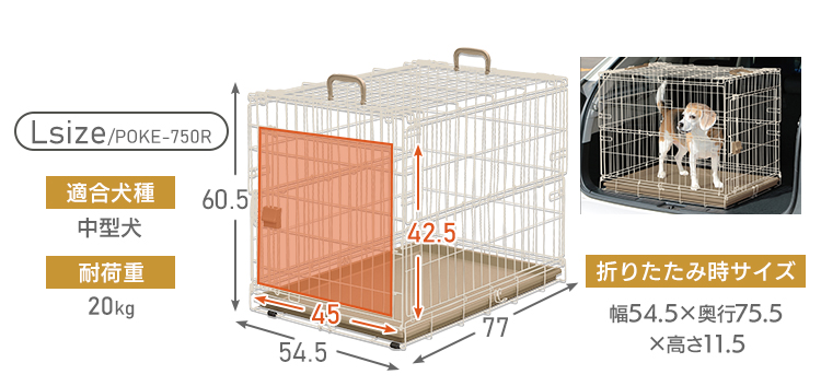 【Sサイズ】●商品サイズ(cm)幅約34×奥行約47×高さ約38.5●折りたたみ時サイズ(cm)幅約34×奥行約45×高さ約10●入口サイズ(cm)幅約26×高さ約24.5●適応犬種超小型犬~小型犬●主要材質線材:スチール(粉体塗装)取っ手・ロックパーツ:ABS樹脂トレー:ポリプロピレン【Mサイズ】●商品サイズ(cm)幅約46×奥行約63×高さ約50●折りたたみ時サイズ(cm)幅約46×奥行約61×高さ約11●入口サイズ(cm)幅約36×高さ約34●適応犬種小型犬~中型犬●主要材質線材:スチール(粉体塗装)取っ手・ロックパーツ:ABS樹脂トレー:ポリプロピレン【Lサイズ】●商品サイズ(cm)幅約54.5×奥行約77×高さ約60.5●折りたたみ時サイズ(cm)幅約54.5×奥行約75.5×高さ約11.5●入口サイズ(cm)幅約45×高さ約42.5●適応犬種中型犬●主要材質線材:スチール(粉体塗装)取っ手・ロックパーツ:ABS樹脂トレー:ポリプロピレン