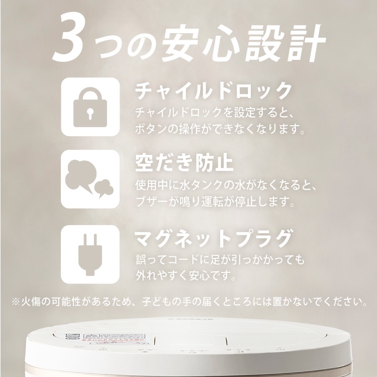3つの機能&設計[チャイルドロック/空だき防止/マグネットプラグ]で、安心して使用できます。