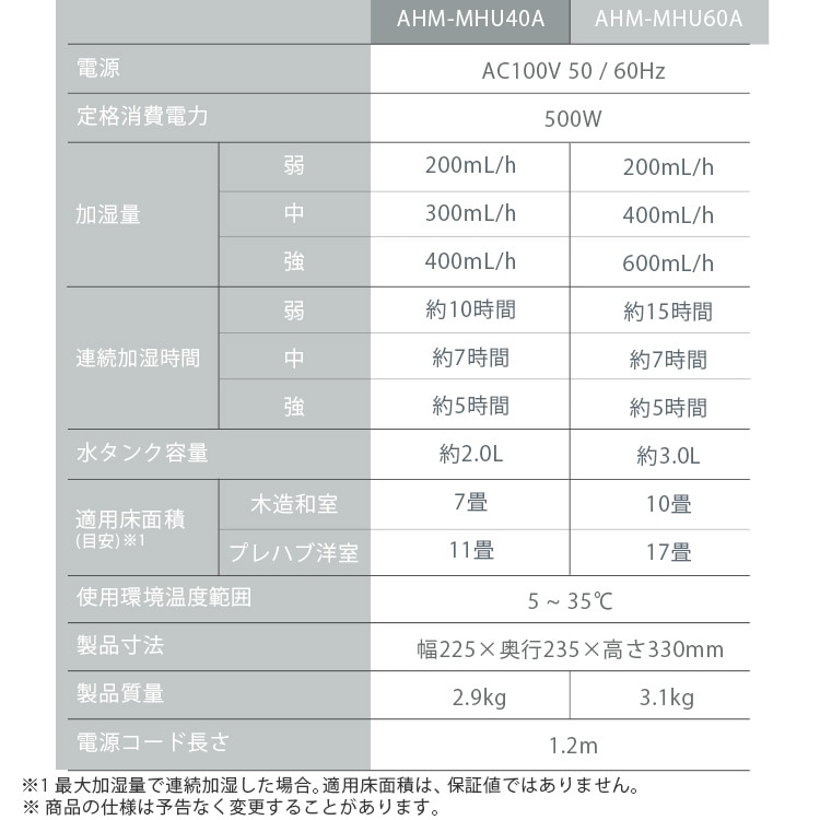・自動モード:湿度を50%または60%に保つよう設定し、自動的に加湿量を調節して運転を行います。