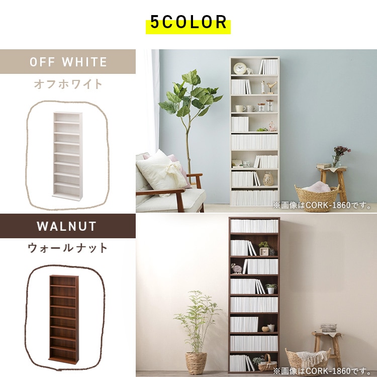 【商品説明】空間を有効活用できる大容量のハイタイプ。高さを使って収納力UP。壁際を活用することで収納スペースを作ります。可動棚付きだから、文庫本から青年コミック(B6判)まで、サイズに合わせてすっきり収納できます。どんな場所にも合う、ベーシックカラー。大容量収納で、リビング、デスクサイド、小物収納、キッチンにも大活躍。たっぷりしまえる、丈夫な造りです。底板が長い仕様で安定性UP。転倒防止金具付きで安心です。★お客様組立★【商品仕様】●商品サイズ(cm)幅約59.8×奥行約23.0×高さ約180.0●製品質量約19.8kg●耐荷重固定棚板(大)1枚あたり:約10kg、固定棚板(小)1枚あたり:約10kg、可動棚板1枚あたり:約10kg●積載量全体:約70kg●主要材質プリント紙化粧パーティクルボード、プリント紙化粧繊維板(MDF)●必要工具+ドライバー(サイズ:2番)※二人での組み立てをおすすめします。※耐荷重は測定値であり、保証値ではありません。