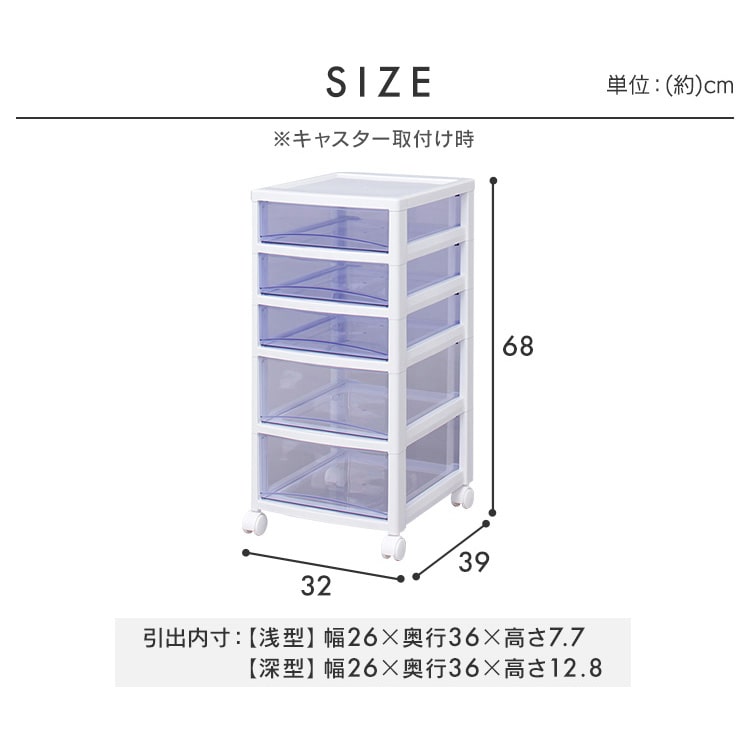 引出しに透明度の高いスチロール樹脂を使用した、中身が確認しやすいクリアタイプのチェストです。