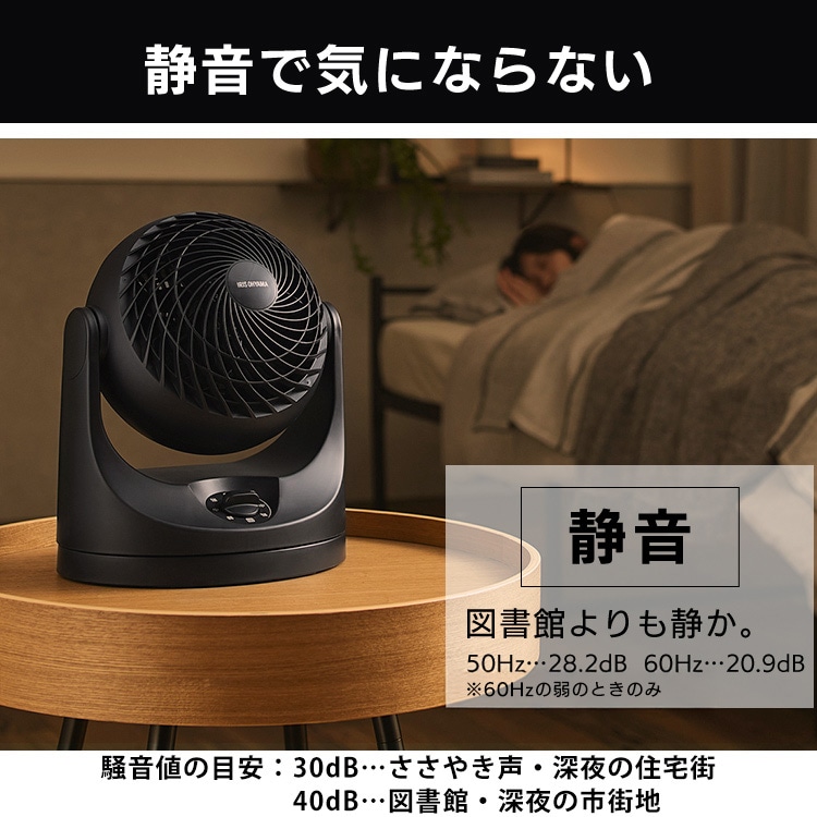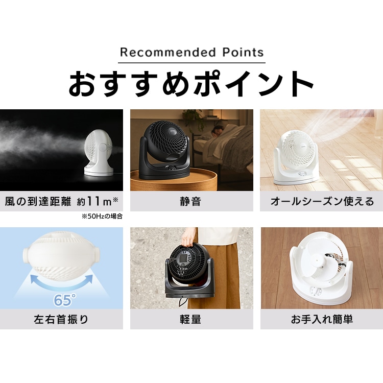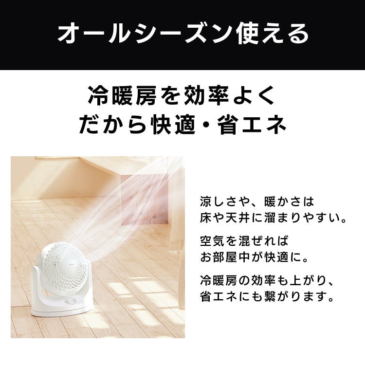 エアコンと併用して夏は冷気を部屋全体へ、冬は暖かい空気を足元へ循環し一年中使えます。