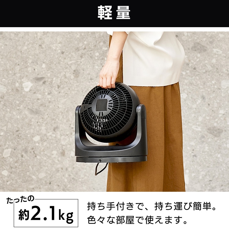●商品サイズ(cm)幅約29.1×奥行約19.1×高さ約31●質量約2.1kg●電源AC100V(50/60Hz共用)●消費電力49/43W●風量調整3段階●適応床面積14畳●コードの長さ約1.4m●カラーホワイト、ブラック