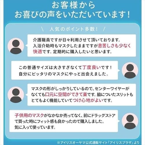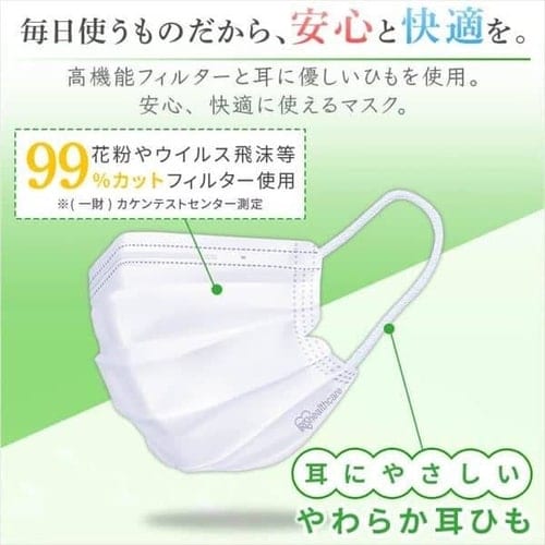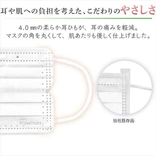 耳にやさしいやわらか丸耳ひも採用で耳が痛くなりにくいです。