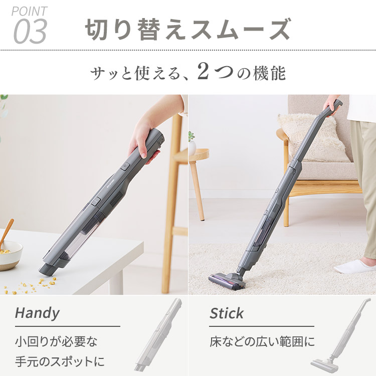 ワンタッチのスムーズな切り替えでお掃除の効率が向上します。