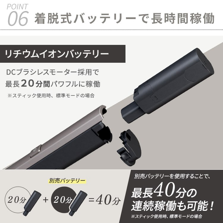 場所に合わせて、スティック/ハンディ簡単使い分け。