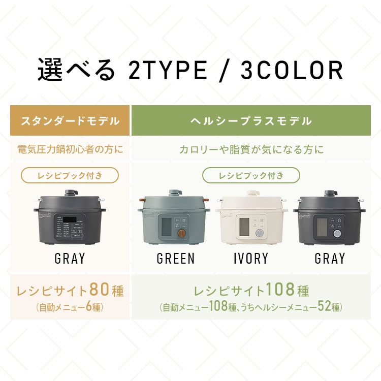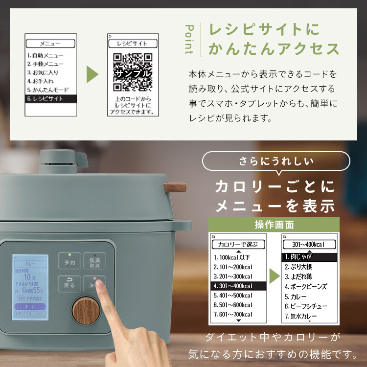いろんな料理に挑戦したい方におすすめな“ヘルシープラスモデル[自動メニュー108種(ヘルシーメニュー52種)]。