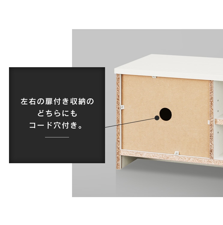左右の扉付き収納はどちらもコード逃がし穴付き。