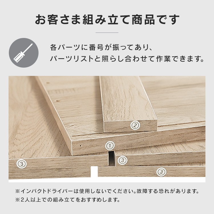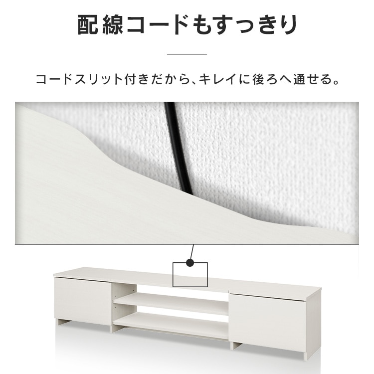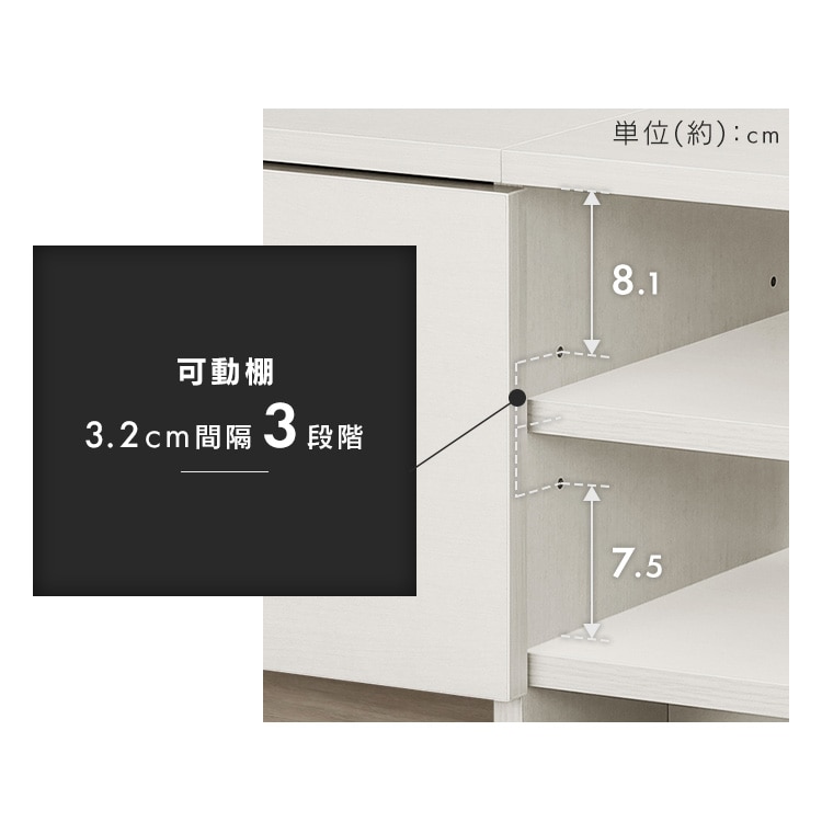 ●60型TVまで対応●商品サイズ(cm)幅約150×奥行約29.6×高さ約31.1●商品質量約18.1kg●耐荷重天板:40kg底板:10kg可動棚板:5kg扉収納(1個あたり):約3kg全体:61kg●主要材質木質部分 プリント紙化粧パーティクルボード、プリント紙化粧繊維板金属部分 金属(鋼)(エポキシ樹脂塗装)●必要工具+ドライバー(サイズ:2番)握り部分の直径30mm以上電動ドライバーの使用可※インパクトドライバーは使用しないでください。●カラーブラックオーク オフホワイト