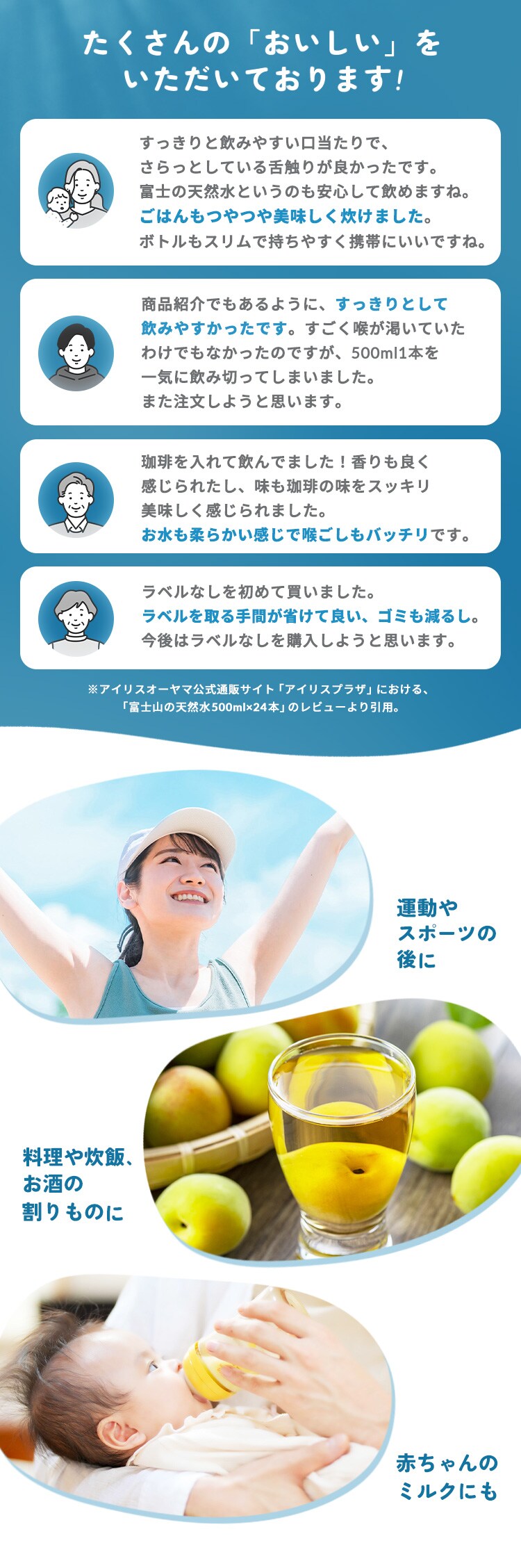 自然の恵みたっぷりのすっきりと飲みやすい天然水です。
