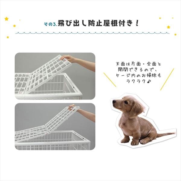 オールプラスチック製で、サビないペットケージです。プラケージ660の一回り大きいサイズで、上部を取ればペットサークルとしても使えます。移動に便利なキャスター付きです。