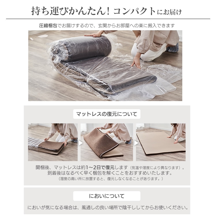 持ち運びしやすい圧縮梱包でコンパクトにお届け。