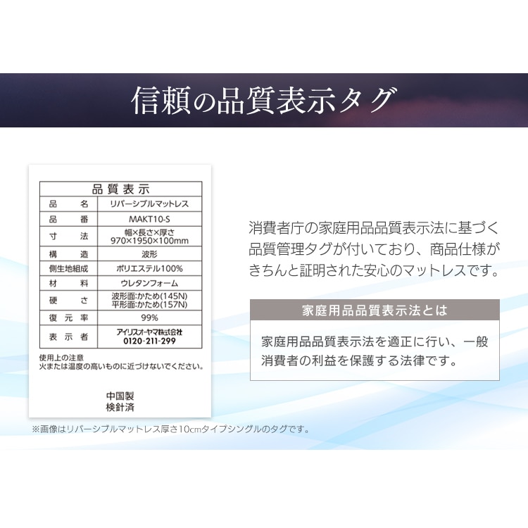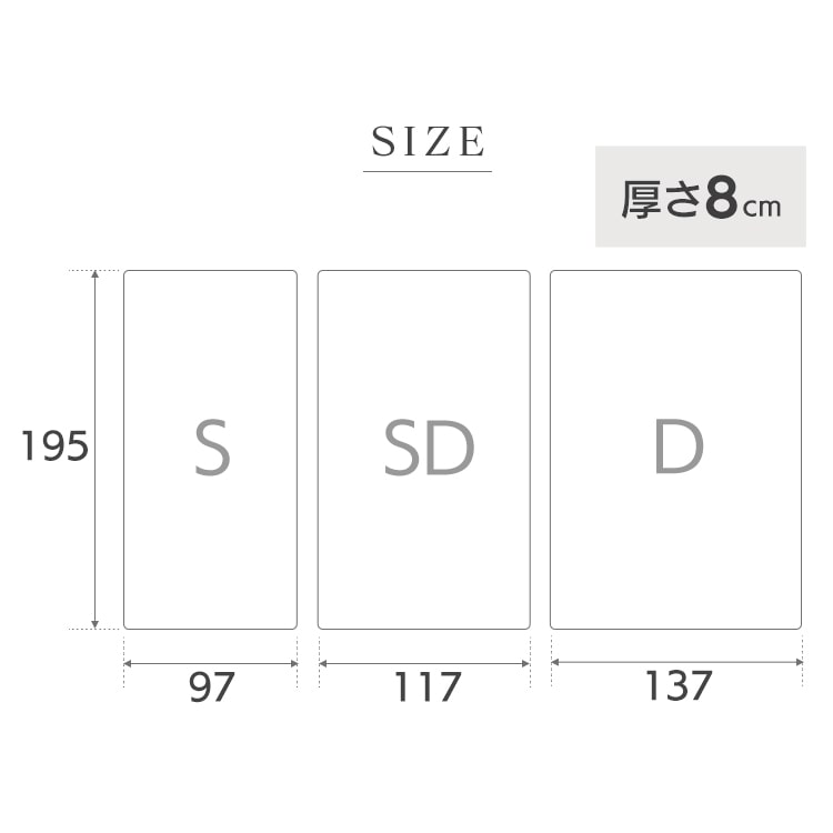 ●商品サイズ(cm)幅約97×奥行約195×高さ約8●商品質量約8.5kg●目付けニット:約145g/m2パイル:約170g/m2メッシュ:約190g/m2●マットレスの硬さやわらかめ(85N)●復元率約98%●構造一枚もの 波形●主要材質側生地:ポリエステル100%詰めもの:ウレタンフォーム※側生地のみ取り外して洗濯ができます。洗濯ネットをご使用ください。※詰め物のウレタン本体は劣化するおそれがありますので洗濯しないでください。