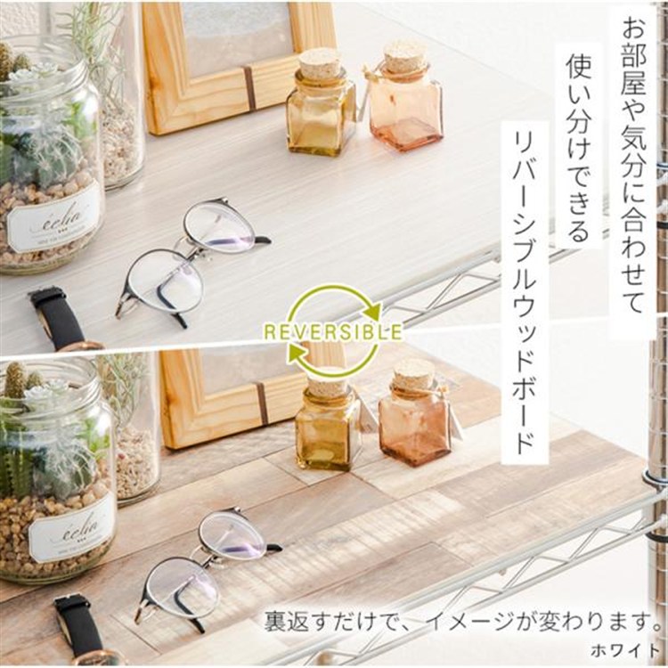 お部屋の雰囲気に合わせて選べるメタルラック用リバーシブルウッドボードです。