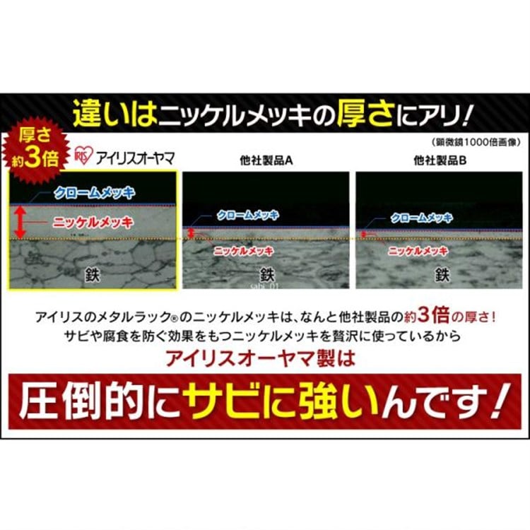 ポール直径25mmで軽量タイプ、クロームメッキ仕上げのメタルシェルフです。