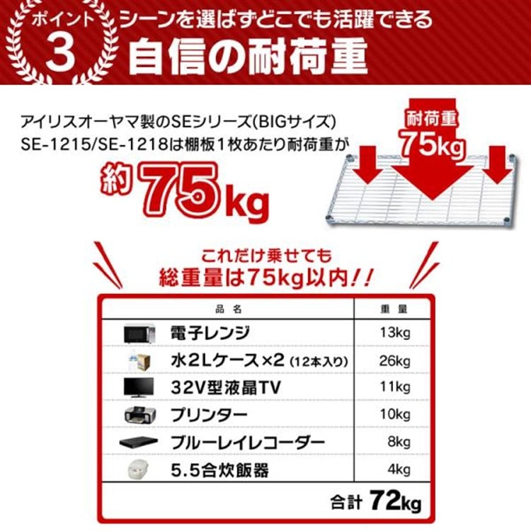 アイリスオーヤマの別売パーツと組み合わせて、オリジナルのシステムラックを作れます。