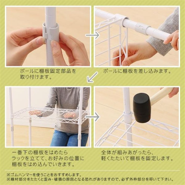 2.5cm間隔で棚板の高さが変えられ、収納するものに合わせてムダなく最適なスペースで収納できます。