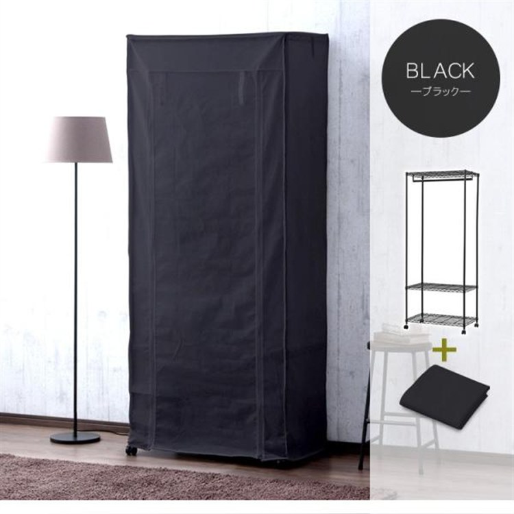 【幅75cm】ワードローブ カバーセット CMW-75183C ブラック ラック 収納 おしゃれ 衣類 ハンガー 単品 メタルラック