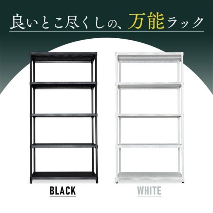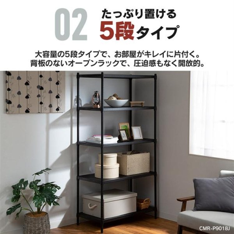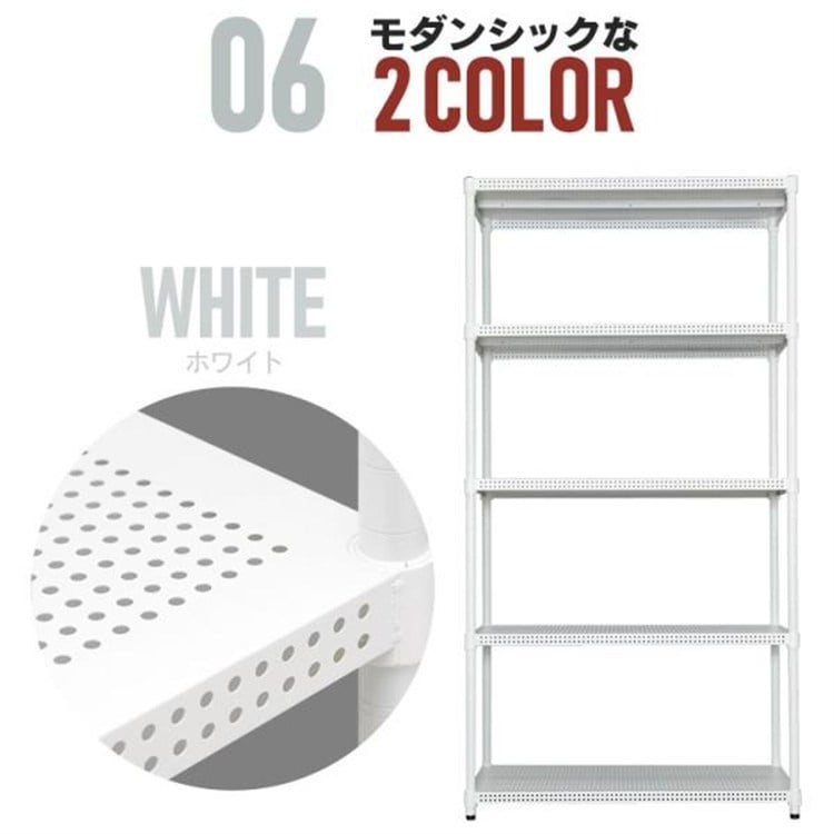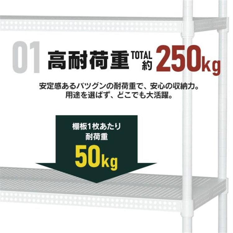●商品サイズ(cm):幅約91×奥行約46×高さ約178.5●パッケージサイズ(cm):幅約95×奥行約47.5×高さ約22●重量(kg):19.8●耐荷重(kg):全体約250、棚板1枚当たり約50●材質:スチール、ポリスチレン樹脂