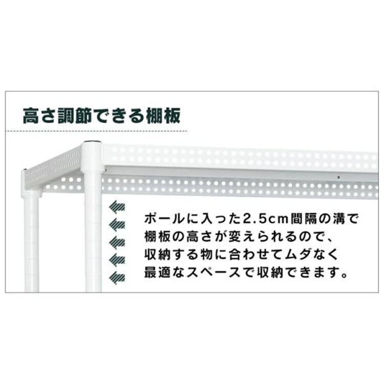 パンチング穴が通常メタルラック棚板の穴より小さいため、小物などが落下しにくくなっています。