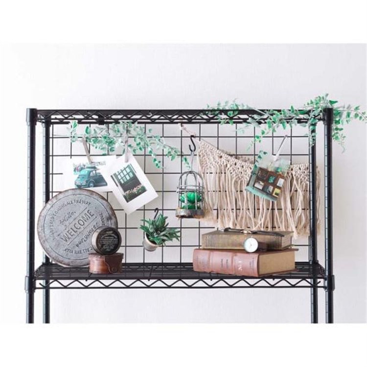 メッシュパネルを付ければラックサイドやラック奥が、小物収納やディスプレイ収納に。