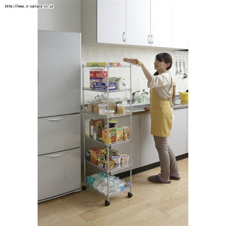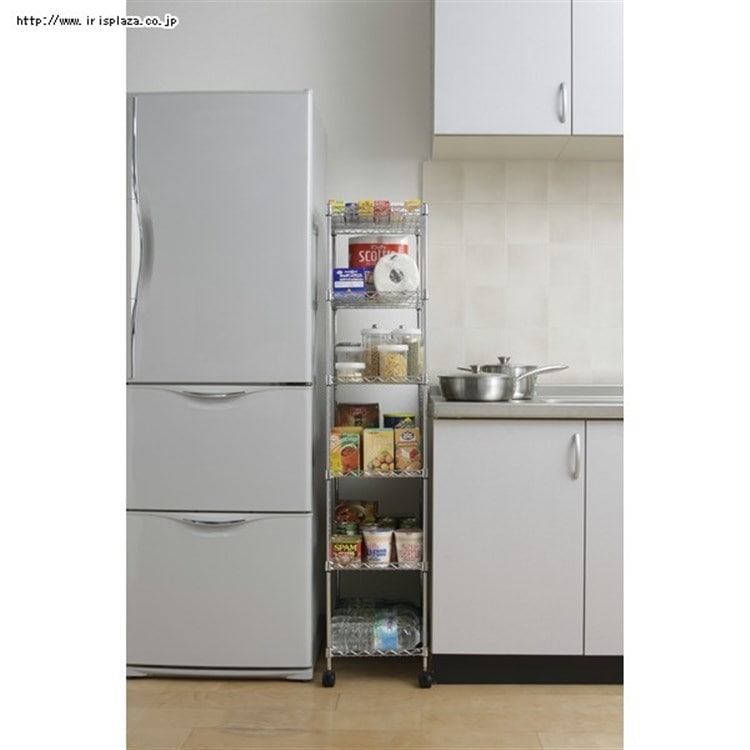 冷蔵庫とシンクの間、コンロと壁の間などにできる隙間を上手に活用することのできるメタルスリムです。