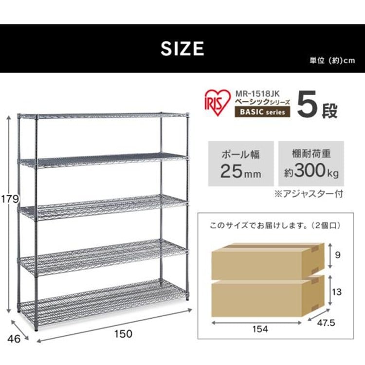 棚板1枚あたりの耐荷重300kg!抜群の強度で、たわまない!
