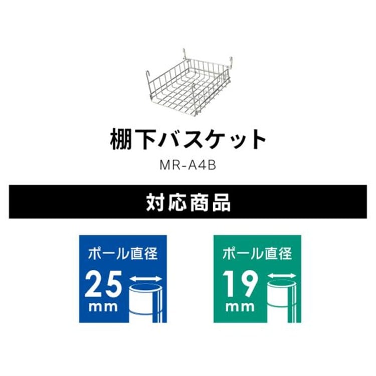 メタルラックの棚下のデットスペースをなくすことができる棚下バスケットです。雑誌等(A4ファイルサイズ)にぴったりのサイズです。前フック、後フックと取り付け金具が付いています後の取り付け金具は自由に動くので、どんなメタルラックにも合います。(棚奥行き27.5cm以上対応)≪部品購入のお問い合わせにつきまして≫下記よりお問い合わせ頂きますようお願いします。お問合せフォームはこちら※部品により、ご注文を承れない場合があります。 ※部品は商品との同時注文はできません。※別途送料がかかります。予めご了承ください。「メタルラック」はアイリスオーヤマ株式会社の登録商標または商標です。
