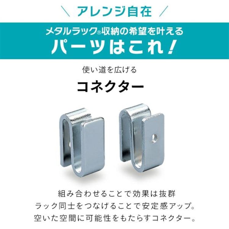 メタルラック専用のコネクターです。棚板同士を連結する際やメッシュパネルの取り付けに使用します。2個セットになっています。★メタルミニ(ポール直径19ミリ)用コネクターはこちら→メタルミニ(ポール直径19mm)コネクター 2個入 MM-2R≪部品購入のお問い合わせにつきまして≫下記よりお問い合わせ頂きますようお願いします。お問合せフォームはこちら※部品により、ご注文を承れない場合があります。 ※部品は商品との同時注文はできません。※別途送料がかかります。予めご了承ください。「メタルラック」はアイリスオーヤマ株式会社の登録商標または商標です。