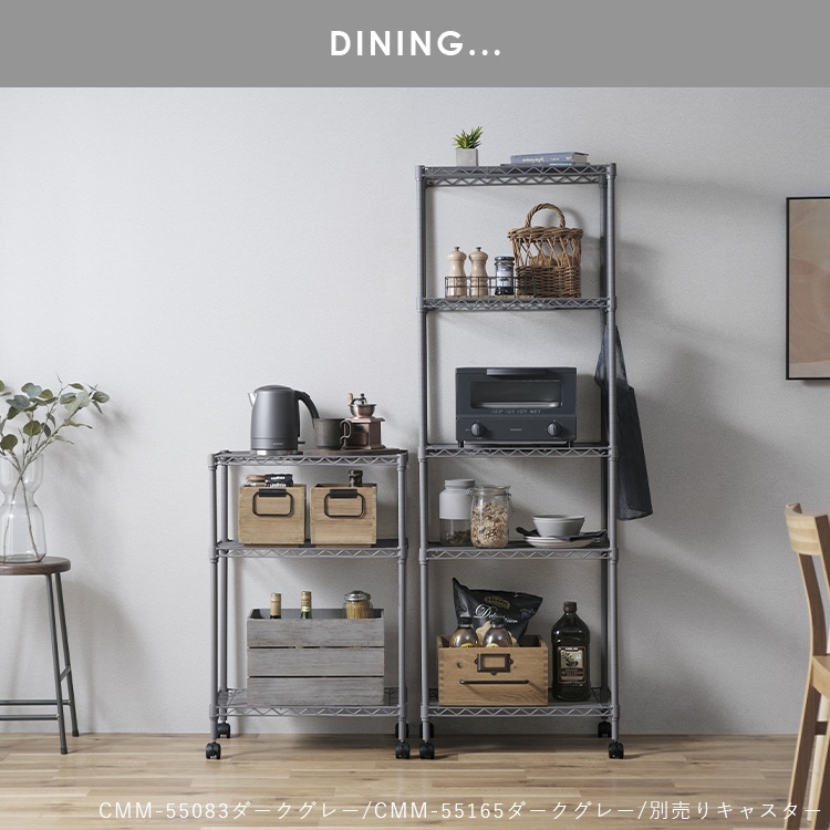 お部屋の雰囲気に合わせて選べるマットカラーのメタルラック。ネジ・釘を使わないので女性でも楽々組立てできます。【ポイント】◆高さ調節できる棚板ポールに入った2.5cm間隔の溝で棚板の高さが変えられるので、収納する物に合わせて、ムダなく最適なスペースで収納できます。◆キズ・サビに強い粉体塗装(パウダーコーティング)防錆性、耐熱性、耐油性があるので、水回りやキッチンにもおすすめ!◆余裕の耐荷重棚板1枚あたり耐荷重約50kg、全体約100kg!◆ガタツキ防止のアジャスターガタツキを抑えるアジャスターで脚の微調整ができます。