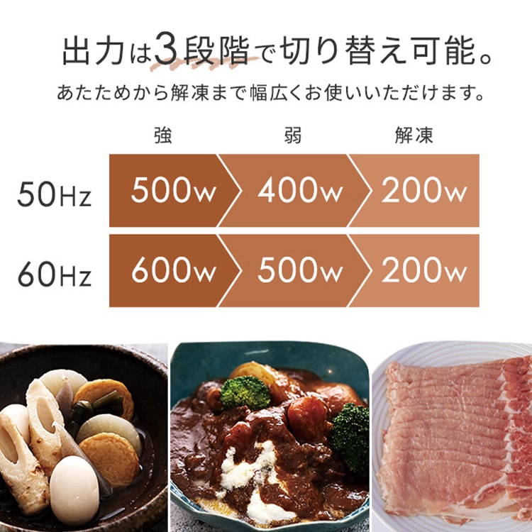 出力は3段階(600W・500W・200W)で切り替え可能。