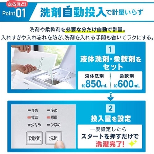 Point.1:洗剤自動投入/洗剤・柔軟剤自動投入で軽量いらず