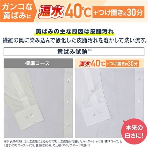 ・ガンコな黄ばみに「40℃コース」+つけ置き約30分/染みついた黄ばみを温水+つけ置きでスッキリ!