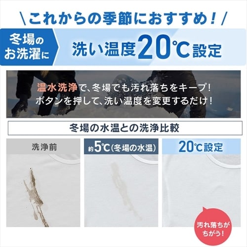 “冬場のお洗濯に、洗い温度20℃設定”