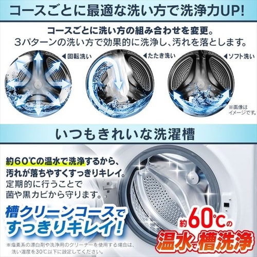 ・温水洗浄+乾燥/洗浄力の高い温水洗浄後と合わせてしっかり洗濯・乾燥
