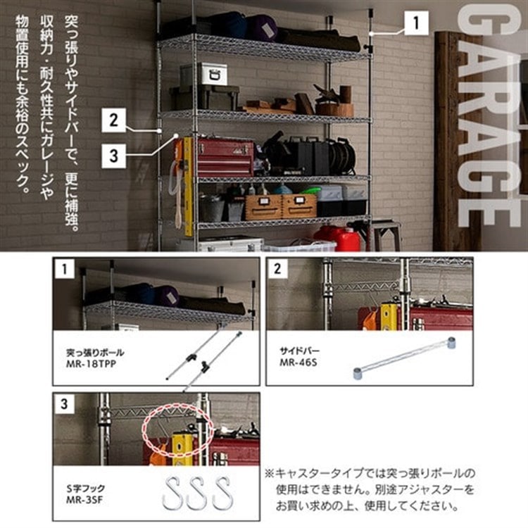 頑丈で丈夫なつくりでガレージや物置使用も余裕の、超高耐荷重仕様。