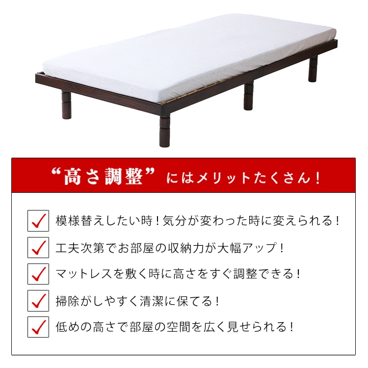 生活スタイルに合わせて4段階高さ調整できるすのこベッド!
