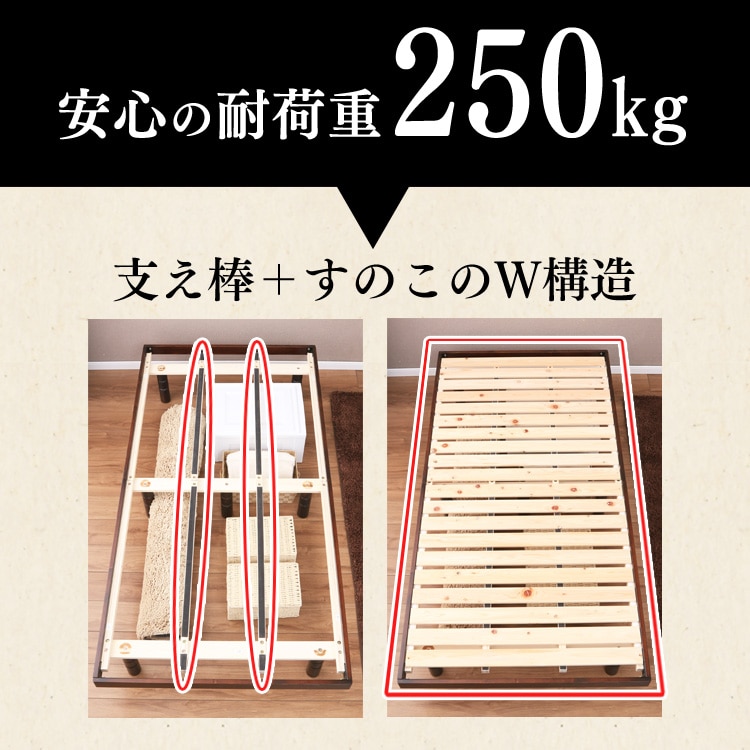 すのこと支え棒のW構造でしっかりと体を支える安心設計。
