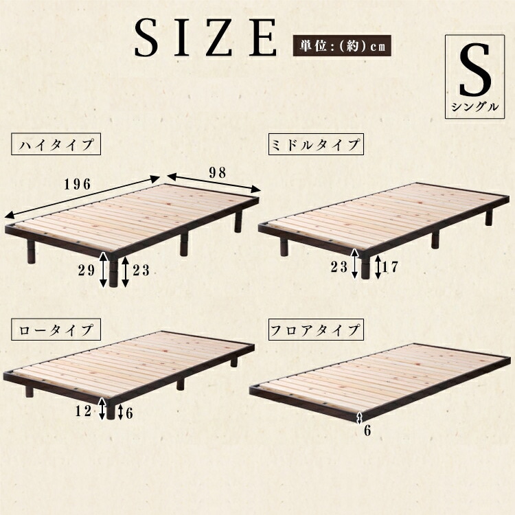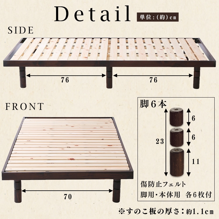 ※現在マットレスセットは白のみの販売となっております。※●商品サイズ(cm)幅約98×奥行約196×高さ約6~29●商品重量約18.5kg●材質すのこ:日本産檜フレーム:パイン材●組立時間の目安2名で約30分●組立に必要な工具プラスドライバー
