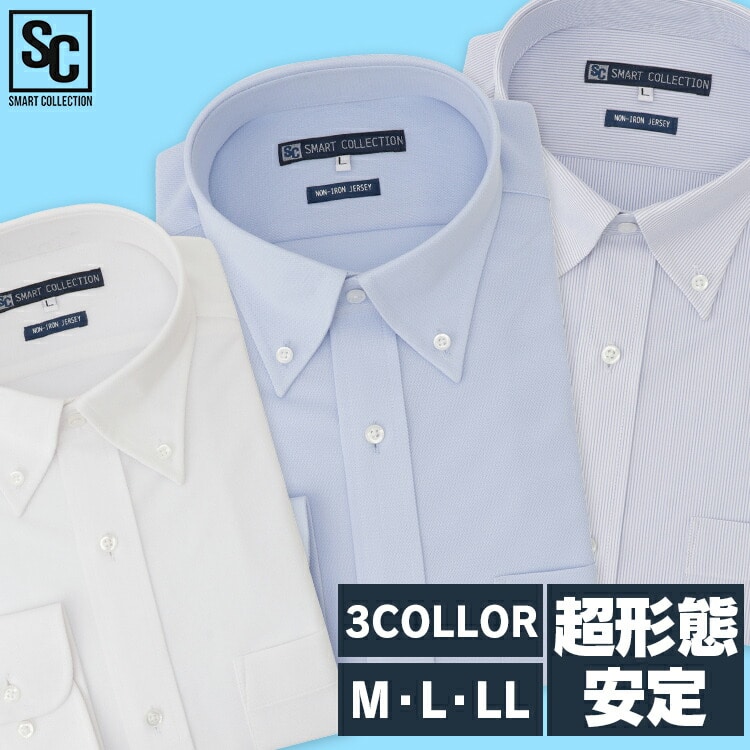 襟がボタンダウンカラーのトリコット素材のワイシャツです。