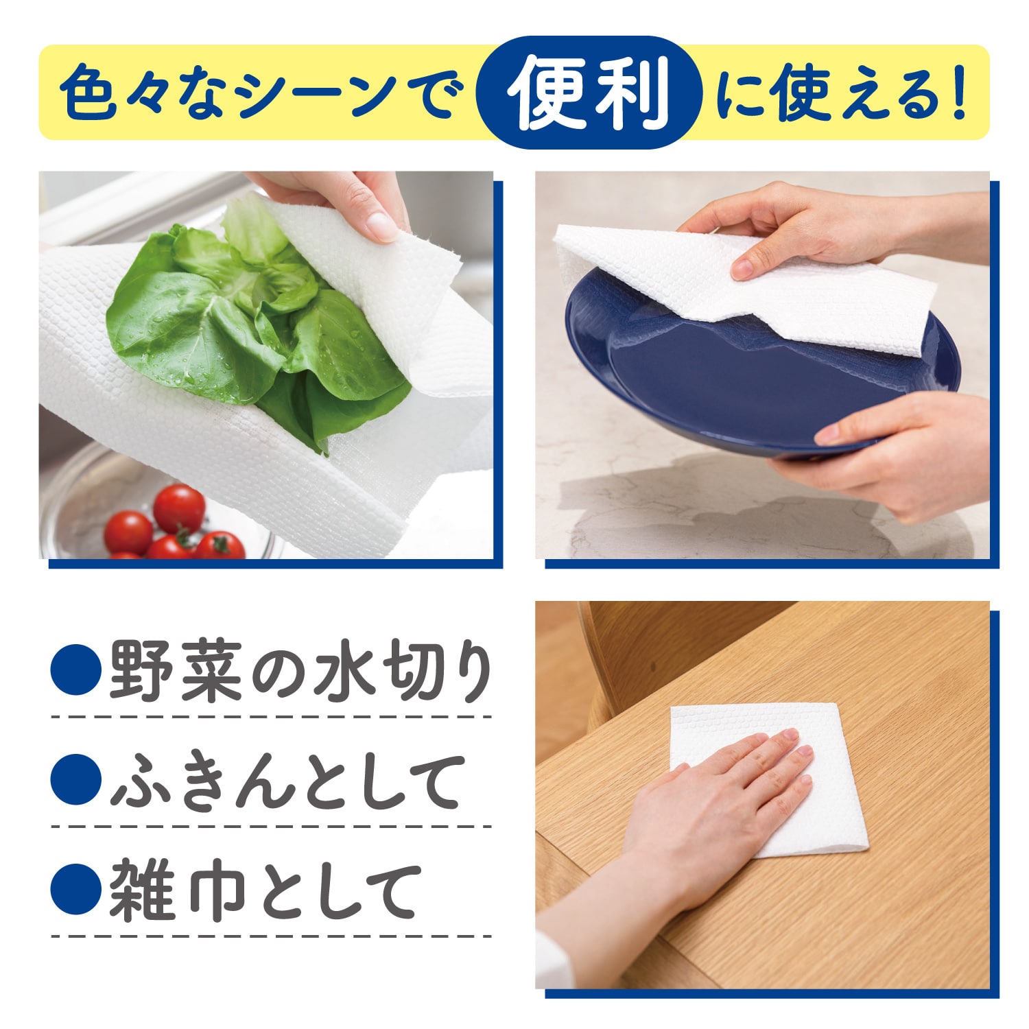 ◆“水”に濡らしてギュッと“絞って”繰り返し使える丈夫なペーパータオル。