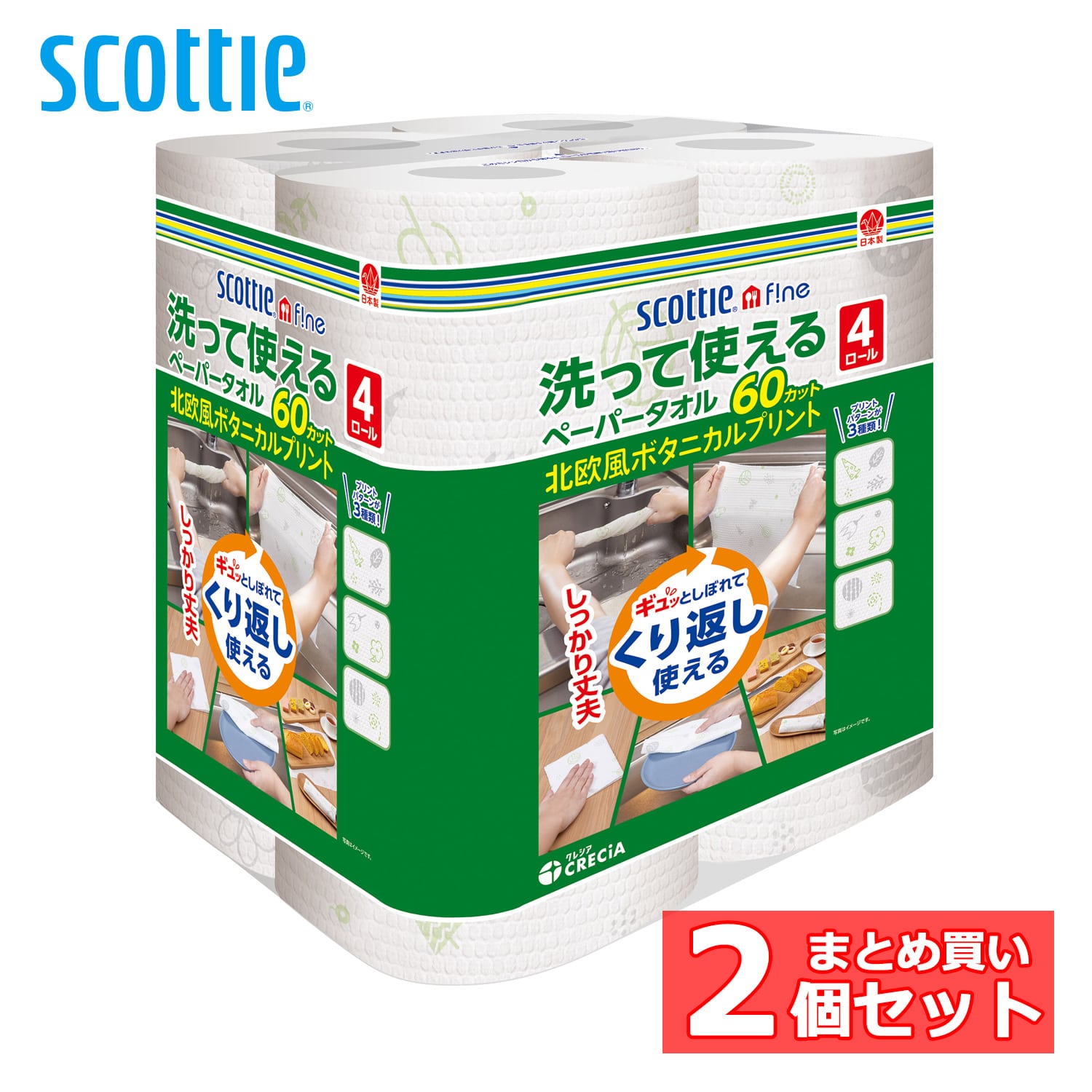【8ロール】スコッティファイン 洗って使えるペーパータオル プリント 60カット 4ロール×2個セット【プラザセレクト】