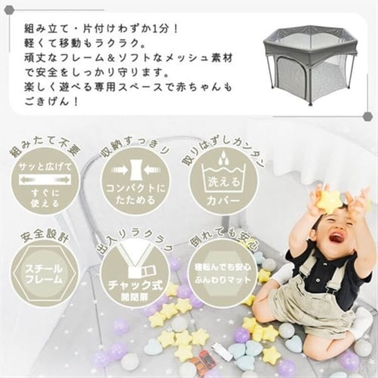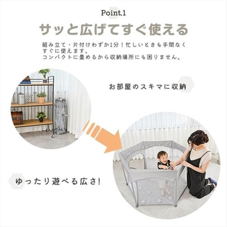 ◆広げてロック!工具不要!さっと広げてすぐに使えるベビーサークル