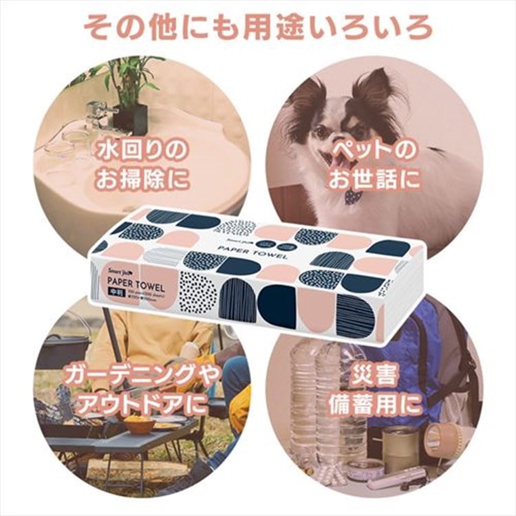 ピュアパルプ100%で、吸水性に優れたペーパータオルです。