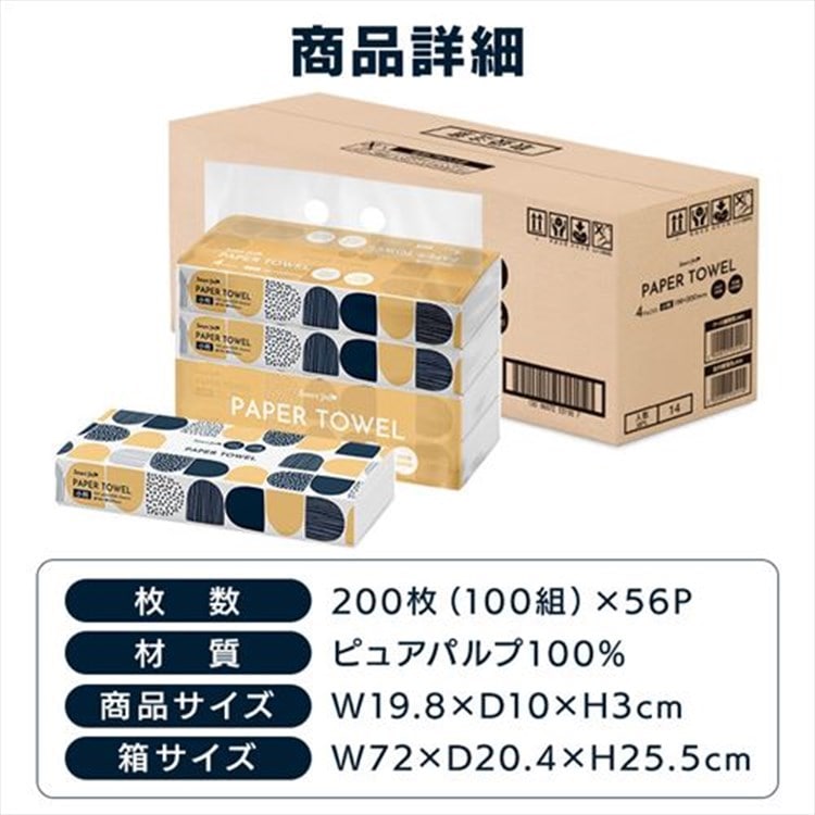 ●商品サイズ(cm)(1個あたり)幅約20×奥行約10×高さ約3.7シート幅198mm、長さ200mm●内容量100組(200枚)×4P×14●材質ピュアパルプ100%