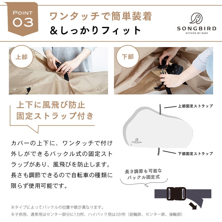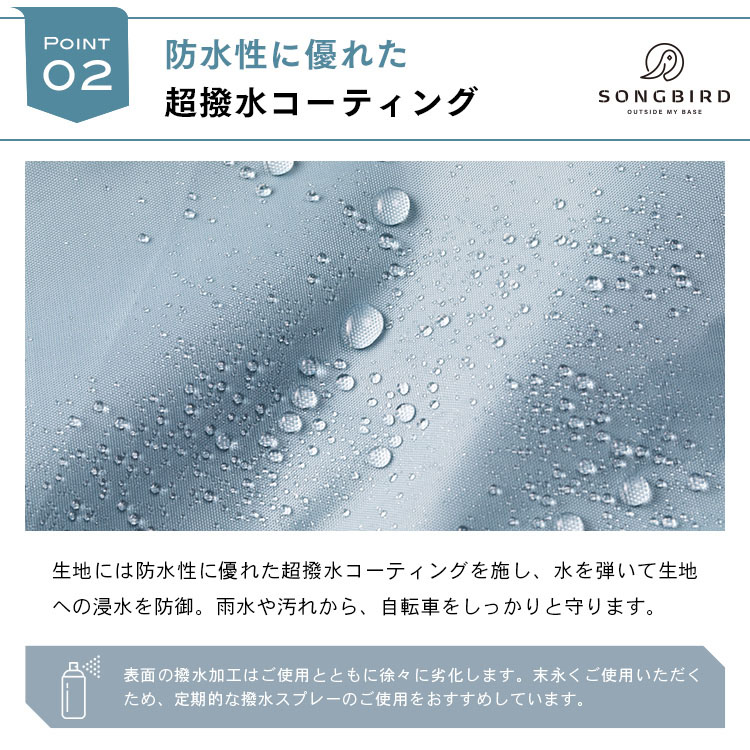 UV加工を施している生地で紫外線にも強く、しっかりと自転車を守ります。