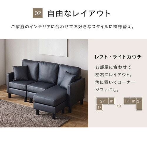 角に置いてコーナーソファにも。